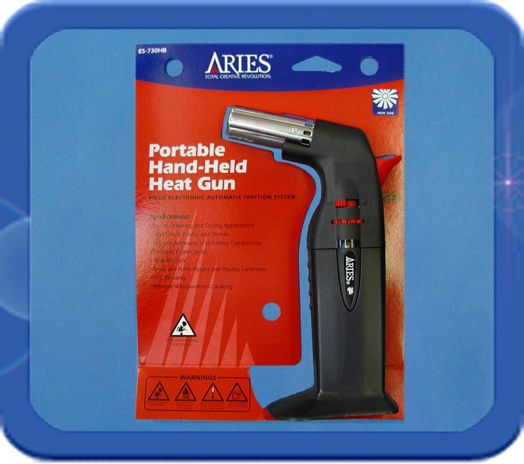 De Aries ES-730HB is een handbrander met hetelucht. Geschikt voor verhitten en drogen algemeen, buizen en krimpkous opkrimpen, ontdooien van bevroren sloten, lijmen en andere stoffen activeren, Vinyl soepel maken e.d. De brander is voorzien van een pi?zo ontsteking.