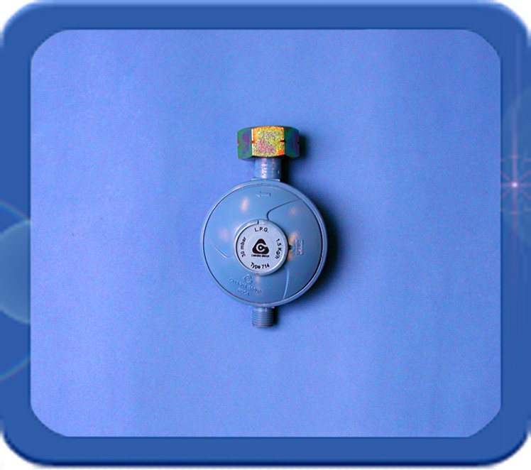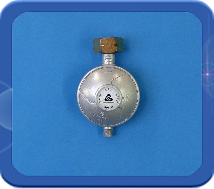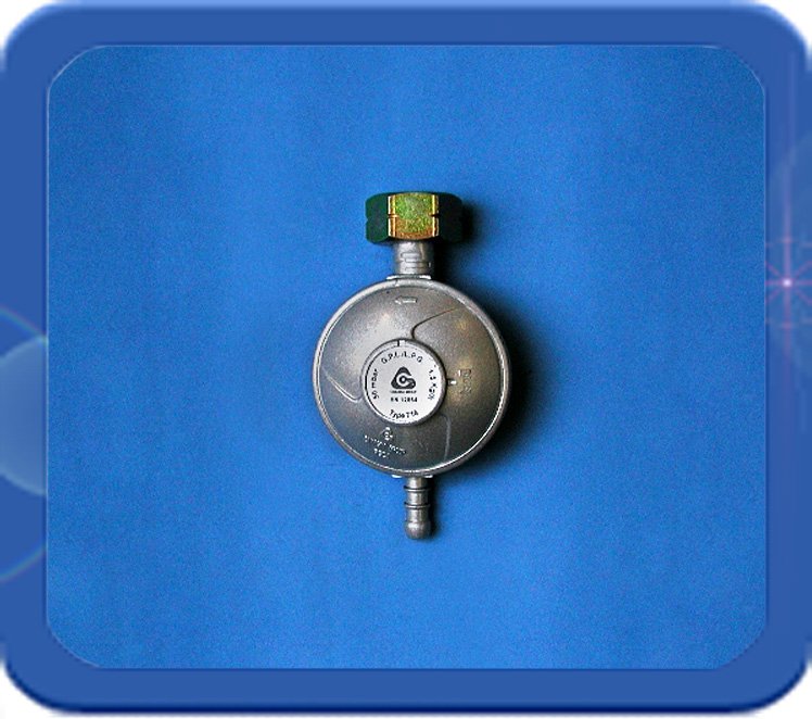 Universele huishouddrukregelaar lage druk met universele aansluiting. Capaciteit 1,5 kg per uur. Ingang 21,8l inwendig, uitgang 8 mm tule.