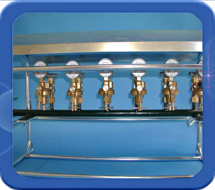Dit koetje is ontworpen om met 6 lassers tegelijk te werken. Iedere lasser kan zijn reduceerventiel (met litermanometer) instellen op een afname tussen de 0 en 30 liter per minuut. Voor ieder reduceerventiel is een spindelafsluiter gemonteerd, zodat ieder ventiel afgesloten kan worden. Ook is het mogelijk om een reduceerventiel te demonteren voor onderhoud, terwijl met de andere doorgewerkt wordt. De slangaansluiting van het koetje aan de primaire zijde heeft een 3/4"R draad. Na deze slangaansluiting is een kogelkraan gemonteerd, waarmee de gastoevoer afgesloten kan worden. De slangaansluiting op de reduceerventielen is 1/4"R met daarop een slangtule voor een 6 mm slang.