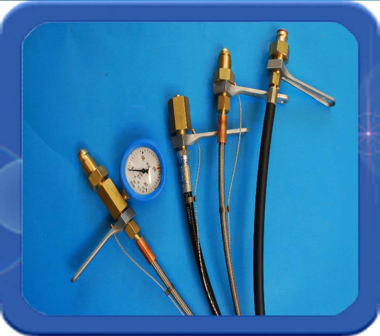Om af te kunnen lezen hoeveel druk er in de primaire en/of de secundaire cilinder zit (afhankelijk van welke afsluiter er dicht gedraaid is) kan een manometer in de overvulslang geplaatst worden.