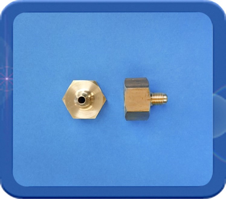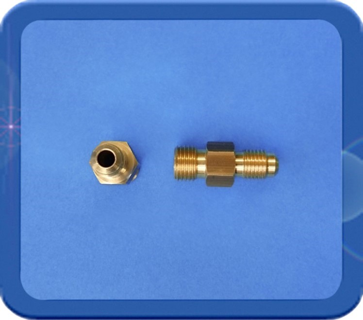 Dit verloop wordt gebruikt om een 7/16"UNF slang (ook wel 1/4" flair genoemd) op een 1/4"r inwendige schroefdraad te monteren. De verloopnippel heeft een 1/4"r uitwendige draad met een vlakke dichting.