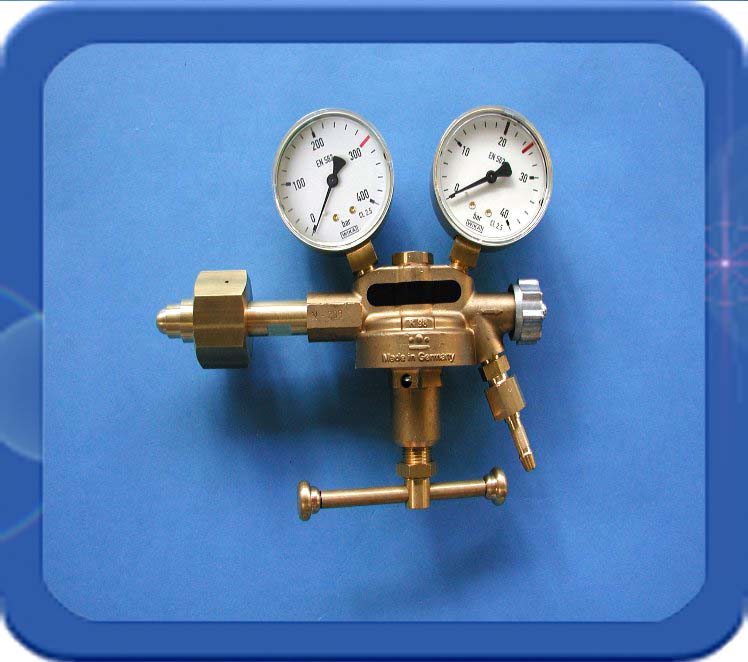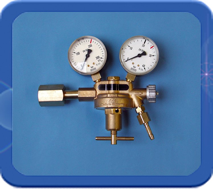 Om de druk van een stikstof cilinder (tot 300 bar) te reduceren naar een werkdruk instelbaar tussen de 0 en 25 bar kunt u dit reduceerventiel gebruiken. De primaire aansluiting is CEN 1 (voor 300 bar cilinder). De secundaire aansluiting is 1/4"R uitwendig met een slangtule voor een 6 mm slang (EN 560). De manometers rond 63 mm zijn klasse 2.5. Het ventiel is voorzien van een zijafsluiter. De afblaasveiligheid staat iets boven de 25 bar afgesteld.