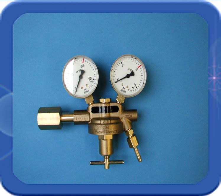 Om de druk van een backing gas cilinder (tot 200 bar) te reduceren naar een flow instelbaar tussen de 0 en 50 liter/minuut kunt u dit reduceerventiel gebruiken. De primaire aansluiting is 24.32 R inwendig (voor RU 3 cilinder). De secundaire aansluiting is 1/4"R uitwendig met een slangtule voor een 6 mm slang (EN 560). De manometers rond 63 mm zijn klasse 2.5. Het ventiel is niet voorzien van een zijafsluiter. (tegen meerprijs mogelijk) De afblaasveiligheid staat iets boven de 10 bar afgesteld.