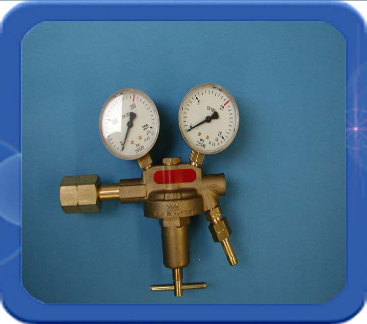 Om de druk van een argon cilinder (tot 200 bar) te reduceren naar een flow instelbaar tussen de 0 en 30 liter/minuut kunt u dit reduceerventiel gebruiken. De primaire aansluiting is 24.32 R inwendig (voor RU 3 cilinder). De secundaire aansluiting is 1/4"R uitwendig met een slangtule voor een 6 mm slang (EN 560). De manometers rond 63 mm zijn klasse 2.5. Het ventiel is niet voorzien van een zijafsluiter. (tegen meerprijs mogelijk) De afblaasveiligheid staat iets boven de 10 bar afgesteld.