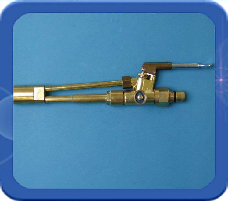 Dit snijvoorstuk (Gloor nr. 4441) is standaard uitgevoerd voor acetyleen. Gebruik voor dit snijvoorstuk de snijmondstukken 600080, 600081 of 600082. Een speer (180 graden) snijvoorstuk wordt vaak gebruikt bij het snijden van cirkels. De slangen zijn omhoog gericht en liggen niet zo snel in het smeltbad. Ook is het makkelijker om de snede haaks op het materiaal te houden. De bovenliggende snijzuurstof handel kan met en kantelmechanisme geblokkeerd worden, zodat men bij het snijden niet constant de handel ingedrukt hoeft te houden. De 16 mm aansluiting voor de handgreep is een aansluiting die men bijna alleen bij Gloor tegenkomt. Dit snijvoorstuk moet aangesloten worden op handgreep 600015.