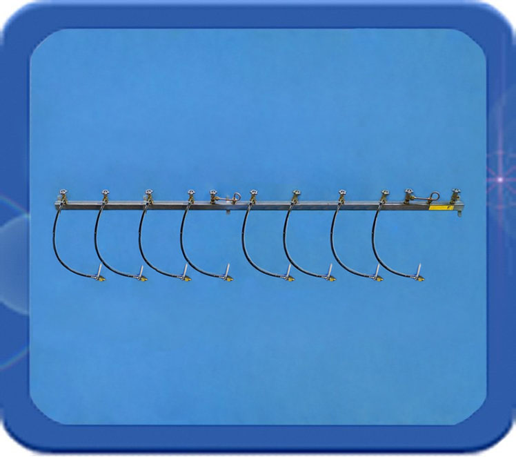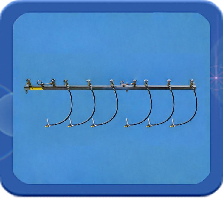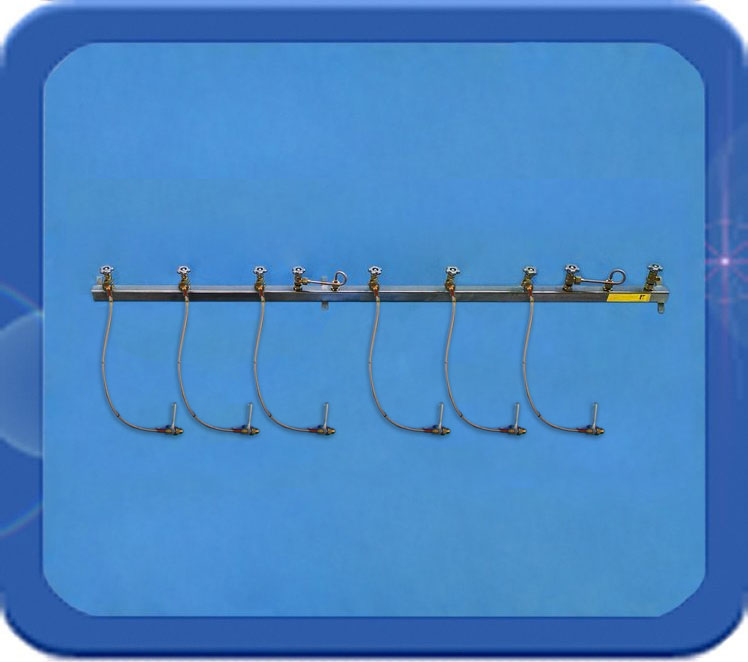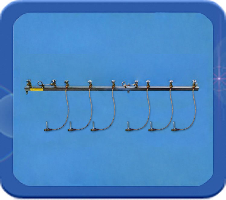 De batterijbalk 2 x 4 cilinders bestaat uit een RVS hoekprofiel met 2 x vier cilinderafsluiters, 2 sectieafsluiters en een hoofdafsluiter aan de linker zijde, acht 75 cm RVS/PTFE batterijslangen met beugel aansluitingen voor op de cilinder. Met de sectieafsluiters kan de linker of de rechter sectie afgesloten worden. Staan beide sectieafsluiters open, dan wordt uit alle acht de flessen tegelijk afgenomen. Alle afsluiters staan onder een hoek van 45 graden naar beneden gericht, zodat de afsluiters makkelijk te openen zijn en de slang niet kan knikken. Voor de hoofdafsluiter houden we de 21,8 l uitwendige cilinderaansluiting aan . De afstand tussen de cilinderafsluiters komt overeen met de afstand tussen de cilinders bij de flesbalk.