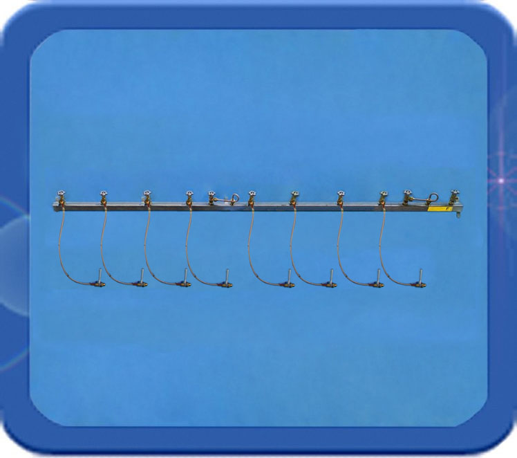 De batterijbalk 2 x 5 cilinders bestaat uit een RVS hoekprofiel met aardaansluiting met 2 x vijf cilinderafsluiters, 2 sectieafsluiters en een hoofdafsluiter aan de linker zijde, tien 75 cm RVS/PTFE batterijslangen met 21,8 l aansluiting voor op de cilinder en een gereduceerde afblaasafsluiter met vlamdover DGN. Met de sectieafsluiters kan de linker of de linker sectie afgesloten worden. Staan beide sectieafsluiters open, dan wordt uit alle tien de flessen tegelijk afgenomen. Alle afsluiters staan onder een hoek van 45 graden naar beneden gericht, zodat de afsluiters makkelijk te openen zijn en de slang niet kan knikken. Voor de hoofdafsluiter houden we de 21,8 l uitwendige cilinderaansluiting aan . De afstand tussen de cilinderafsluiters komt overeen met de afstand tussen de cilinders bij de flesbalk.