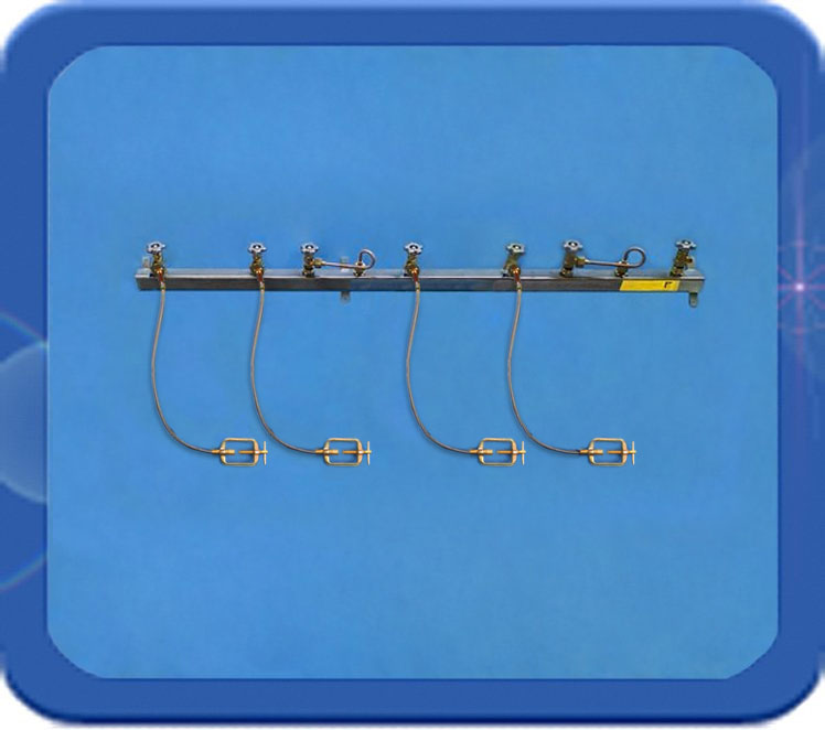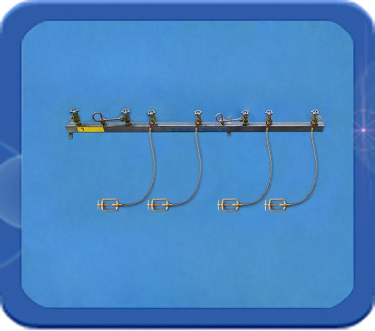 De batterijbalk 2 x 2 cilinders bestaat uit een RVS hoekprofiel met aardaansluiting met 2 x twee cilinderafsluiters, 2 sectieafsluiters en een hoofdafsluiter aan de linker zijde, vier 75 cm RVS/PTFE batterijslangen met 21,8 l aansluiting voor op de cilinder en een gereduceerde afblaasafsluiter met vlamdover DGN. Met de sectieafsluiters kan de linker of de linker sectie afgesloten worden. Staan beide sectieafsluiters open, dan wordt uit alle vier de flessen tegelijk afgenomen. Alle afsluiters staan onder een hoek van 45 graden naar beneden gericht, zodat de afsluiters makkelijk te openen zijn en de slang niet kan knikken. Voor de hoofdafsluiter houden we de 21,8 l uitwendige cilinderaansluiting aan . De afstand tussen de cilinderafsluiters komt overeen met de afstand tussen de cilinders bij de flesbalk.
