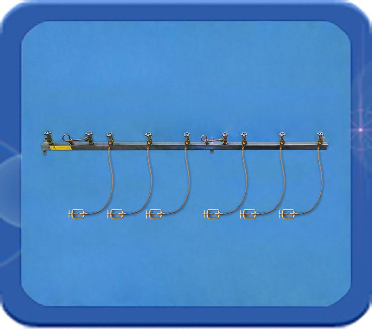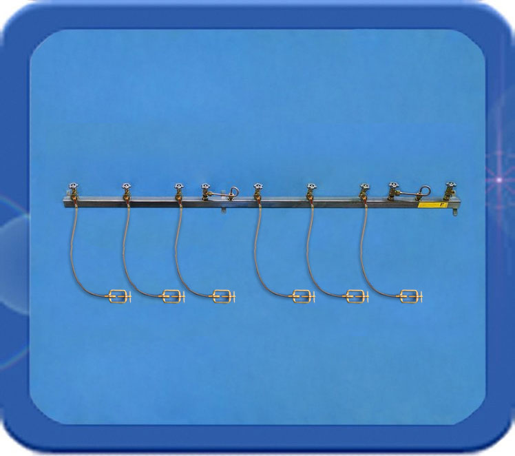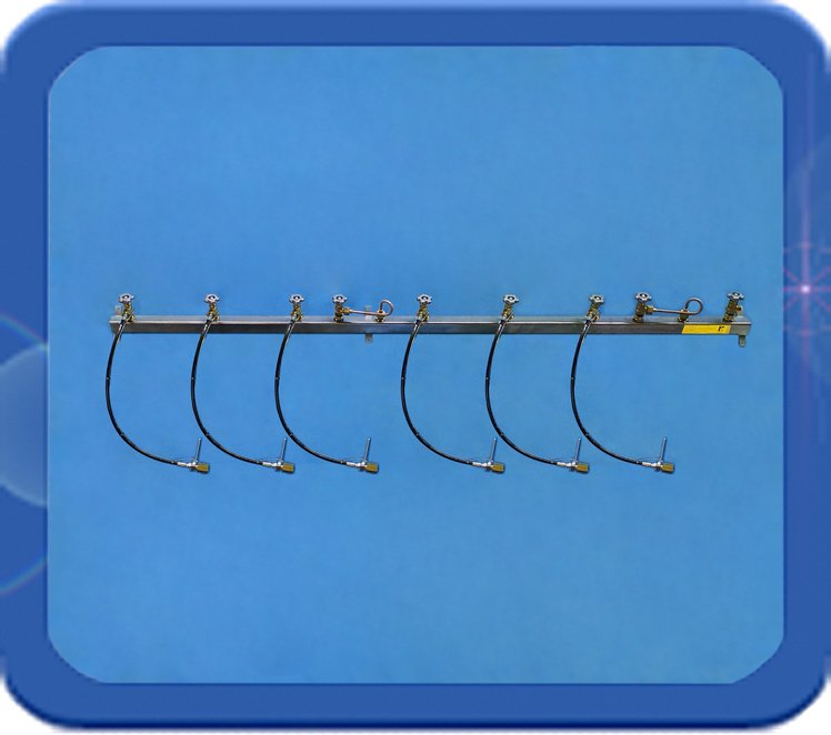 De batterijbalk 2 x 3 cilinders bestaat uit een RVS hoekprofiel met aardaansluiting met 2 x drie cilinderafsluiters, 2 sectieafsluiters en een hoofdafsluiter aan de linker zijde, zes 75 cm RVS/PTFE batterijslangen met 21,8 l aansluiting voor op de cilinder en een gereduceerde afblaasafsluiter met vlamdover DGN. Met de sectieafsluiters kan de linker of de linker sectie afgesloten worden. Staan beide sectieafsluiters open, dan wordt uit alle zes de flessen tegelijk afgenomen. Alle afsluiters staan onder een hoek van 45 graden naar beneden gericht, zodat de afsluiters makkelijk te openen zijn en de slang niet kan knikken. Voor de hoofdafsluiter houden we de 21,8 l uitwendige cilinderaansluiting aan . De afstand tussen de cilinderafsluiters komt overeen met de afstand tussen de cilinders bij de flesbalk.