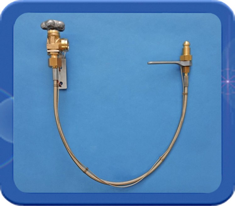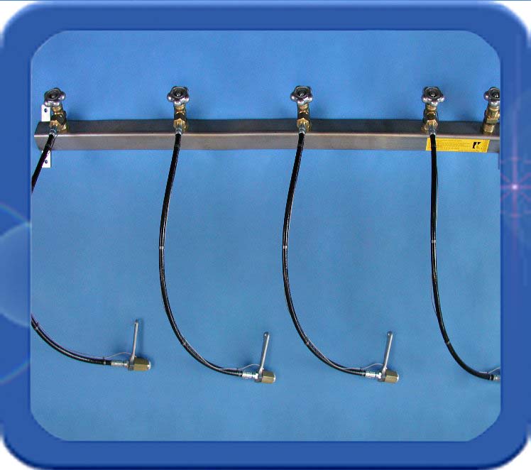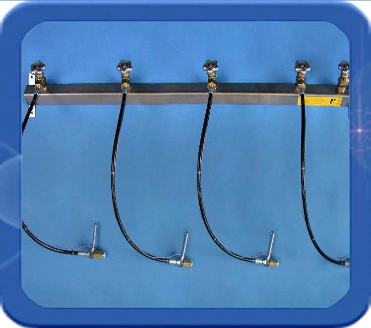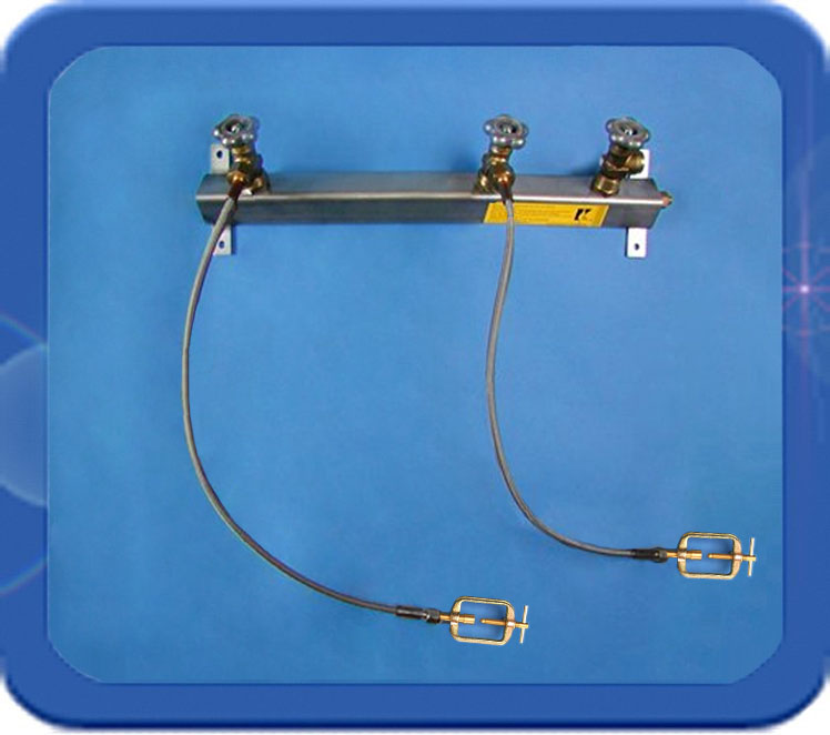 De batterijbalk 1 x 1 cilinder bestaat uit een RVS hoekprofiel, een spindelafsluiter met contramoer, een 75 cm RVS/PTFE batterijslang met beugel aansluiting voor op de cilinder . De spindelafsluiter heeft een 21.8 l uitwendige aansluiting. De batterijslang van de 1 x 1 balk heeft een 21.8 RECHTSE wartel aan de afsluiterzijde.