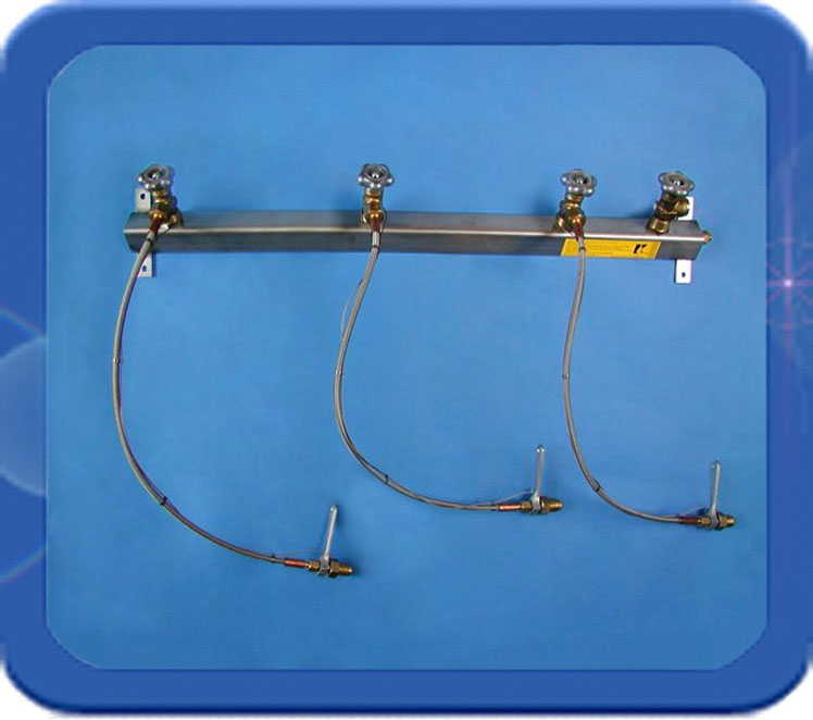 De batterijbalk 1 x 3 cilinders bestaat uit een RVS hoekprofiel met drie cilinderafsluiters en een hoofdafsluiter aan de linker zijde, drie 75 cm RVS/PTFE batterijslangen met beugel aansluitingen voor op de cilinder. De afsluiters staan onder een hoek van 45 graden naar beneden gericht, zodat de afsluiters makkelijk te openen zijn en de slang niet kan knikken. De hoofdafsluiter heeft een 21,8 l aansluiting . De afstand tussen de cilinderafsluiters komt overeen met de afstand tussen de cilinders bij de flesbalk.