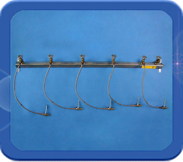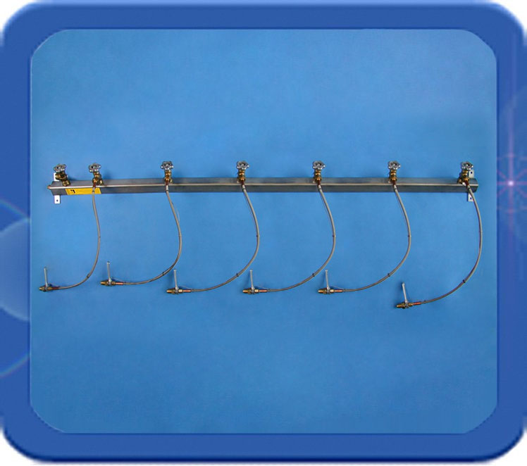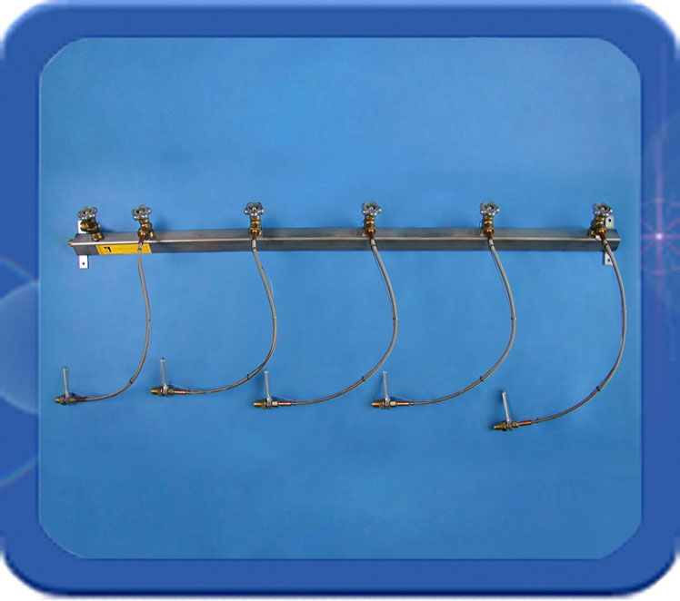 De batterijbalk 1 x 6 cilinders bestaat uit een RVS hoekprofiel met zes cilinderafsluiters en een hoofdafsluiter aan de rechter zijde, zes 75 cm RVS/PTFE batterijslangen met beugel aansluitingen voor op de cilinder. De afsluiters staan onder een hoek van 45 graden naar beneden gericht, zodat de afsluiters makkelijk te openen zijn en de slang niet kan knikken. De hoofdafsluiter heeft een 21,8 l aansluiting . De afstand tussen de cilinderafsluiters komt overeen met de afstand tussen de cilinders bij de flesbalk.