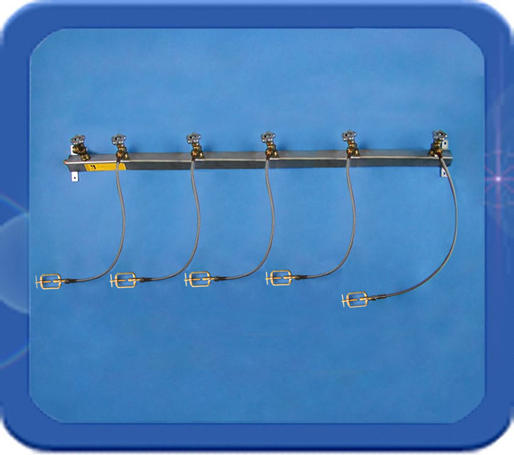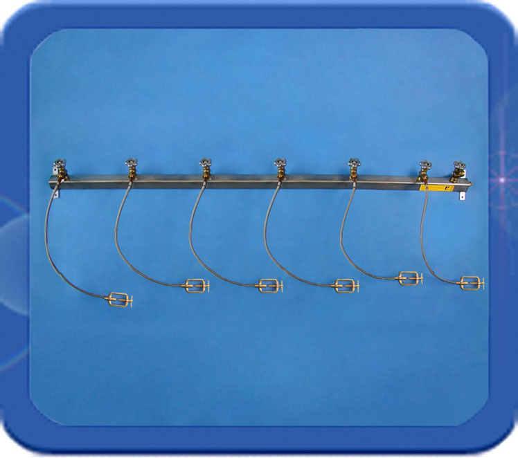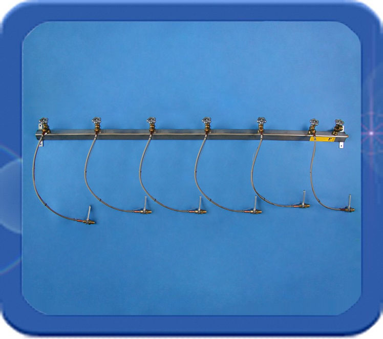 De batterijbalk 1 x 6 cilinders bestaat uit een RVS hoekprofiel met zes cilinderafsluiters en een hoofdafsluiter aan de linker zijde, zes 75 cm kunststof batterijslangen met 21,8 r aansluitingen voor op de cilinder. De afsluiters staan onder een hoek van 45 graden naar beneden gericht, zodat de afsluiters makkelijk te openen zijn en de slang niet kan knikken. Om bij het aansluiten aan de cilinder torsie in de slang te voorkomen zijn de slangen voorzien van een anti-meedraaisleutel. De slangen zijn voorzien van een slangbreukkabel. De hoofdafsluiter heeft een 21,8 r aansluiting . De afstand tussen de cilinderafsluiters komt overeen met de afstand tussen de cilinders bij de flesbalk.