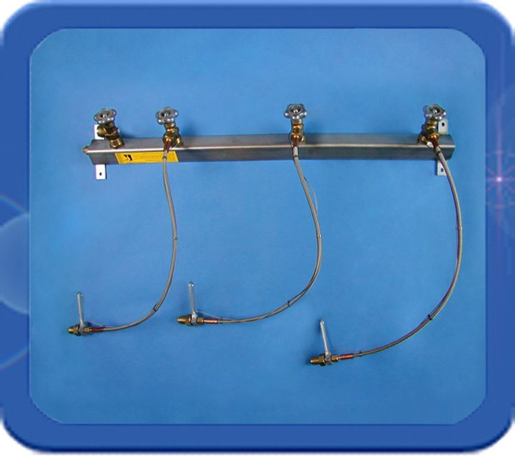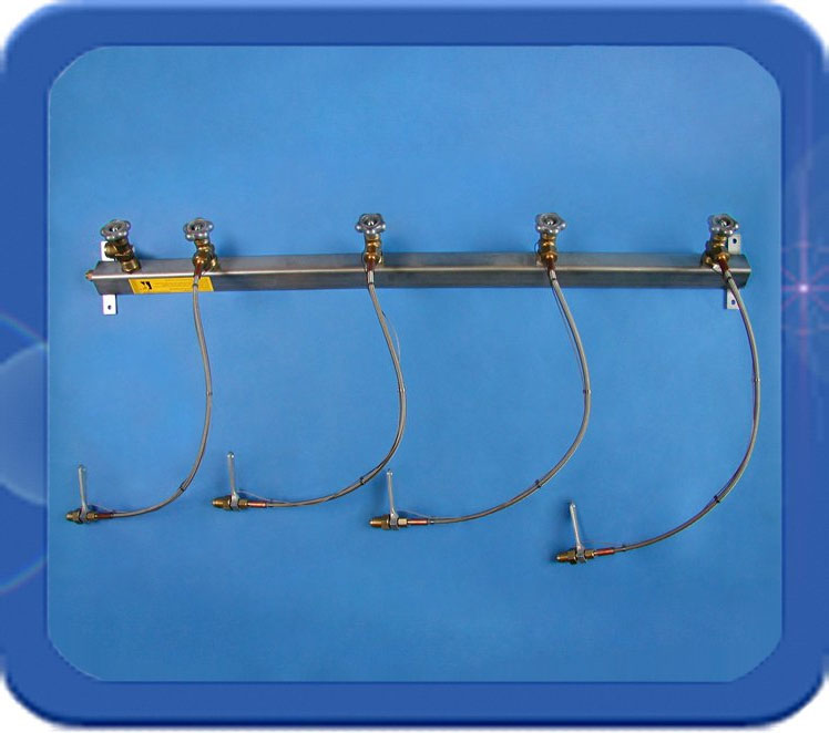 De batterijbalk 1 x4 cilinders bestaat uit een RVS hoekprofiel met vier cilinderafsluiters en een hoofdafsluiter aan de rechter zijde, vier 75 cm RVS/PTFE batterijslangen met beugel aansluitingen voor op de cilinder. De afsluiters staan onder een hoek van 45 graden naar beneden gericht, zodat de afsluiters makkelijk te openen zijn en de slang niet kan knikken. De hoofdafsluiter heeft een 21,8 l aansluiting . De afstand tussen de cilinderafsluiters komt overeen met de afstand tussen de cilinders bij de flesbalk.
