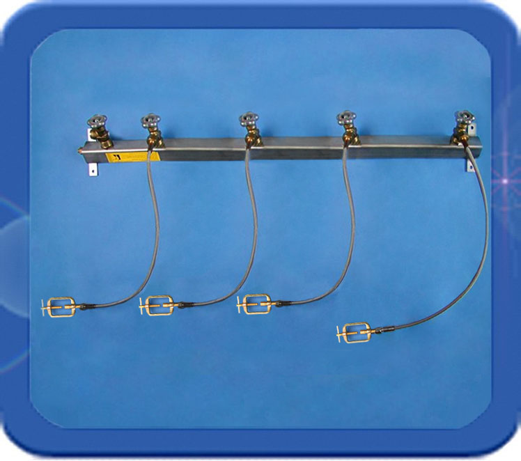 De batterijbalk 1 x 4 cilinders bestaat uit een RVS hoekprofiel met vier cilinderafsluiters en een hoofdafsluiter aan de linker zijde, vier 75 cm kunststof batterijslangen met 24,32 aansluitingen voor op de cilinder. De afsluiters staan onder een hoek van 45 graden naar beneden gericht, zodat de afsluiters makkelijk te openen zijn en de slang niet kan knikken. Om bij het aansluiten aan de cilinder torsie in de slang te voorkomen zijn de slangen voorzien van een anti-meedraaisleutel. De slangen zijn voorzien van een slangbreukkabel. De hoofdafsluiter heeft een 24,32 aansluiting . De afstand tussen de cilinderafsluiters komt overeen met de afstand tussen de cilinders bij de flesbalk.