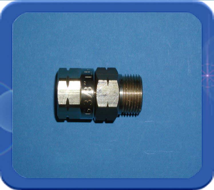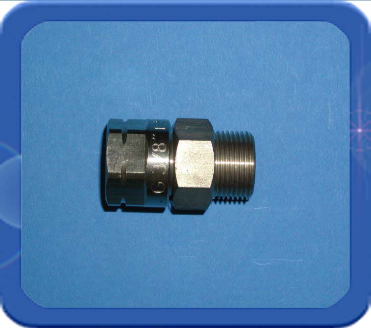 Dit zeer compacte wartelende verloop gaat van 3/8"r uitwendig hol met zeskant 19 mm naar een 3/8"l inwendige wartel met bolconus (zeskant 19 mm). Hierop kan een 3/8"l uitwendige holconische aansluiting met een metallische dichting aangesloten worden.